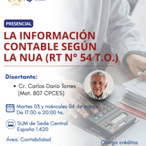 Capacitación PRESENCIAL: «La Información Contable según la N.U.A. (R.T. Nº 54 T.O.)»