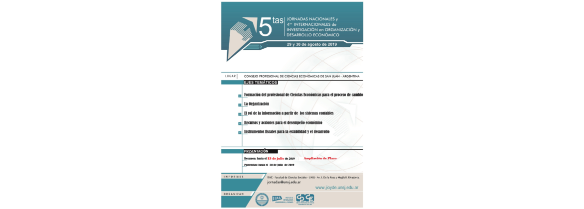 5ª Jornadas Nacionales y 4ª Internacionales de Investigación en Organización y Desarrollo Económico – San Juan