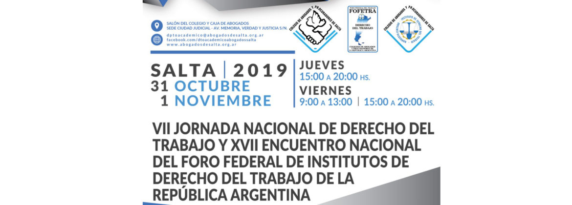 VII JORNADA NACIONAL DE DERECHO DEL TRABAJO Y XVII ENCUENTRO NACIONAL DEL FORO FEDERAL DE INSTITUTOS DE DERECHO DEL TRABAJO DE LA REPÚBLICA ARGENTINA