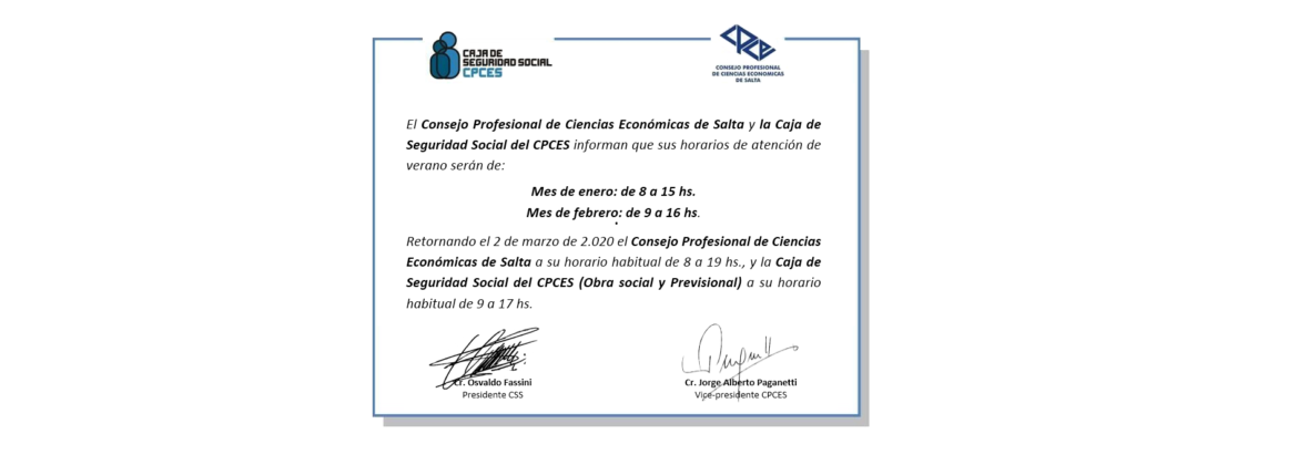 HORARIOS DE ATENCIÓN DE ENERO Y FEBRERO 2020