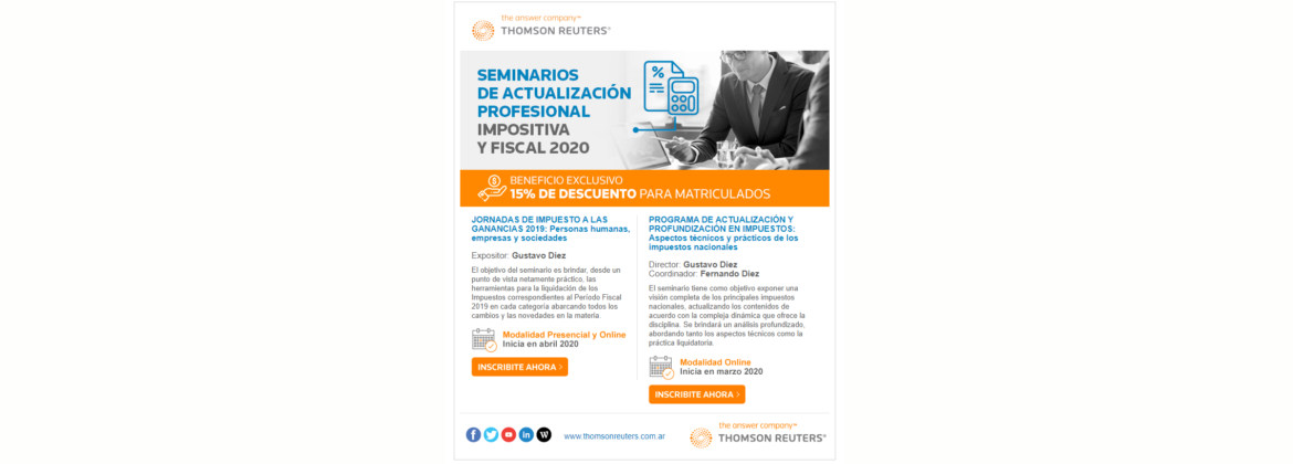 Seminarios de Actualización Profesional Impositiva y Fiscal 2020 – Thomson Reuters
