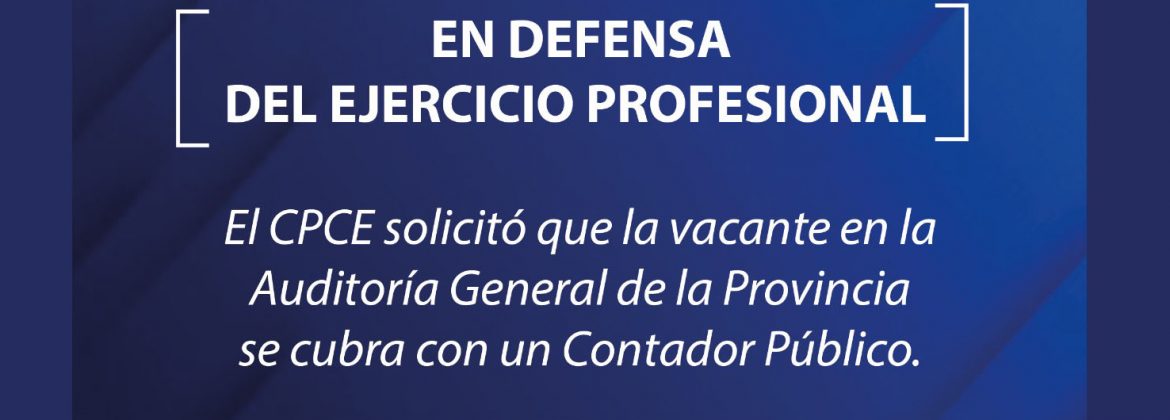 El Consejo Profesional de Ciencias Económicas elevó notas al Gobernador de la Provincia de Salta, a la Cámara de Diputados, a la Comisión Permanente de Auditoría de la Cámara de Diputados y a la Cámara de Senadores de Salta SOLICITANDO que la vacante de uno de los miembros en la Auditoría General de la Provincia sea cubierta por un Contador Público, en virtud de las incumbencias propias del Contador en materia de Auditoría y por estar ya cubierto el cuerpo por dos abogados y dos Licenciados en Administración.