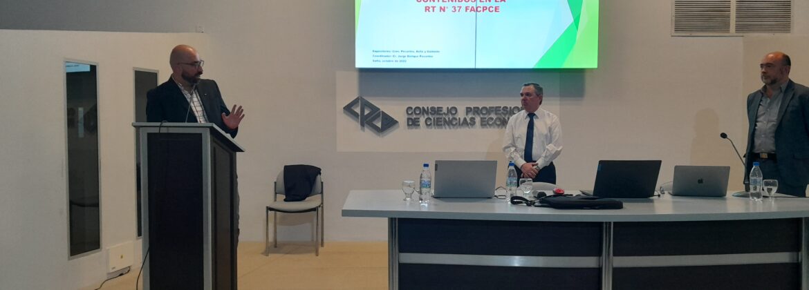 El miércoles 12 y jueves 13 de octubre, en el marco del “Ciclo de análisis de los principales encargos en la RT 37”, se desarrollo la primera parte, en la cual los Cres. Jorge Enrique Pecorino y Hernán José Ávila, desarrollaron el tema “Aspectos básicos del informe de auditoría de estados contables con fines generales”.