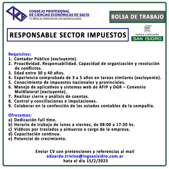 BOLSA DE TRABAJO – INGENIO Y DESTILERÍA SAN ISIDRO