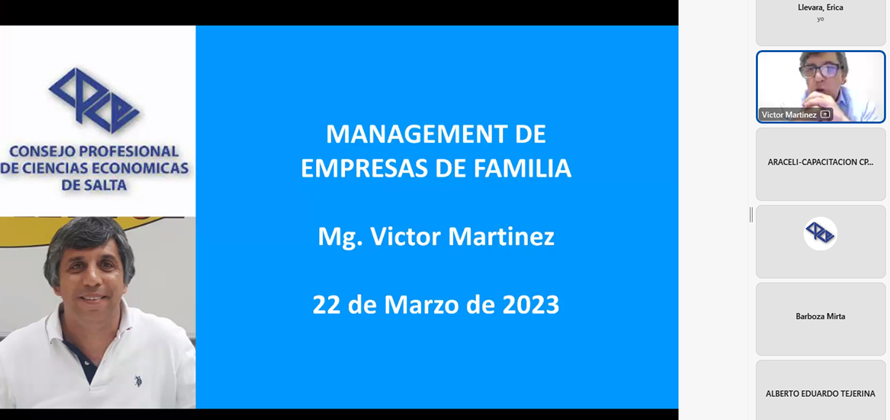 El miércoles 22 de marzo, se llevó a cabo la capacitación online "Management de empresas de familia", a cargo del Lic. Víctor MARTÍNEZ.