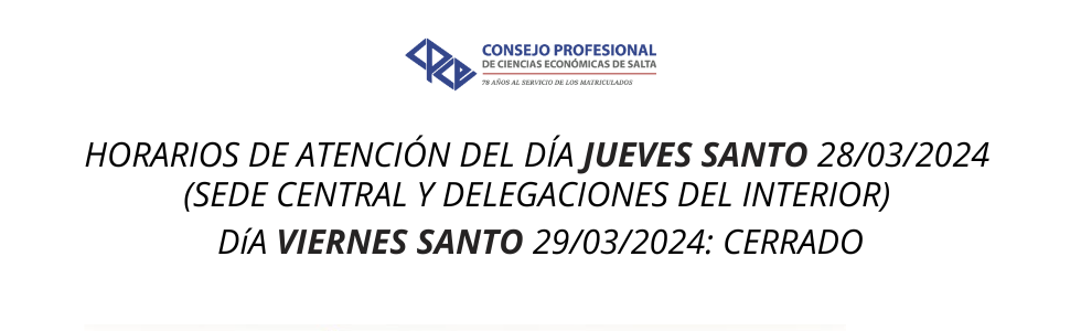 Informamos que, debido al Jueves Santo, el día 28 de marzo de 2024, nuestros horarios de atención al público de Sede Central y Delegaciones del interior serán: