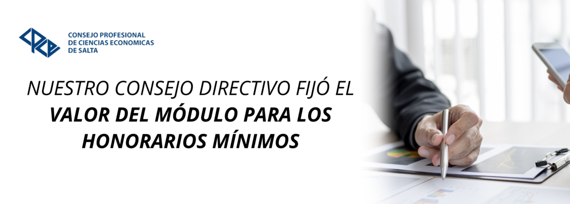 “Teniendo presente que el valor del módulo para determinar los Honorarios Mínimos ha quedado desactualizado debido al transcurso del tiempo y a la inflación existente en nuestro país; que el módulo constituye la unidad de medida en la que se expresan los honorarios, para facilitar la adecuación periódica de los valores mínimos para cada tarea profesional; que la presente modificación al valor del módulo se realiza a fines de mantener un importe de honorarios que signifique un reconocimiento digno a los trabajos realizados por los profesionales en Ciencias Económicas, teniendo en cuenta la complejidad de las tareas, la responsabilidad que conlleva las mismas y la formación necesaria para llevarlas a cabo, entre otros parámetros; que la Ley de Arancel de Honorarios Nº 4.582 se encuentra vigente, y a partir de la derogación de los artículos 10 al 16 de la Ley 6730/94 y la derogación del Decreto Nº 1173/94 también el carácter de orden público de las escalas o tarifas; y que el Artículo 40 de la Ley Nº 4.582, faculta al Consejo Profesional a dictar normas reglamentarias sobre la materia, nuestro Consejo Directivo fijó el valor del módulo para los honorarios mínimos.