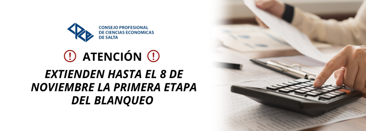 Comunicamos a nuestros matriculados que el Gobierno anunció la extensión de la primera etapa del blanqueo debido a "problemas informáticos y administrativos” hasta el 8 de noviembre.