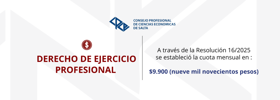 Con motivo del incremento del valor de aporte mensual del Seguro Colectivo a partir del mes de Febrero 2025, a través de la Resolución de Presidencia Ad Referéndum del Consejo Directivo, N° 16/2025, se establece la cuota mensual por Derecho de Ejercicio Profesional en Pesos nueve mil novecientos ($9900),