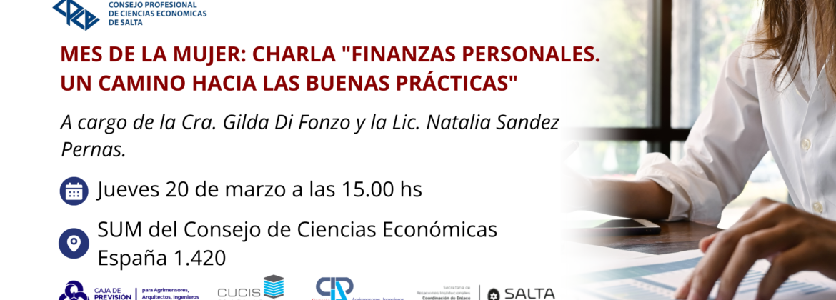Organizada por el COPAIPA junto a nuestro Consejo, la Secretaría de Relaciones Institucionales del Gobierno de Salta, el Colegio Único de Corredores Inmobiliarios, y la Caja de Previsión Social para Agrimensores, Ingenieros y Profesionales Afines, se llevará adelante este 20 de marzo la charla "Finanzas personales: un camino hacia las buenas prácticas".