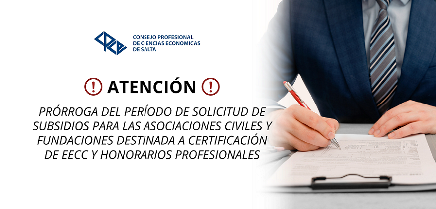 PRÓRROGA DEL PERÍODO DE SOLICITUD DE SUBSIDIOS PARA LAS ASOCIACIONES CIVILES Y FUNDACIONES DESTINADA A CERTIFICACIÓN DE EECC Y HONORARIOS PROFESIONALES