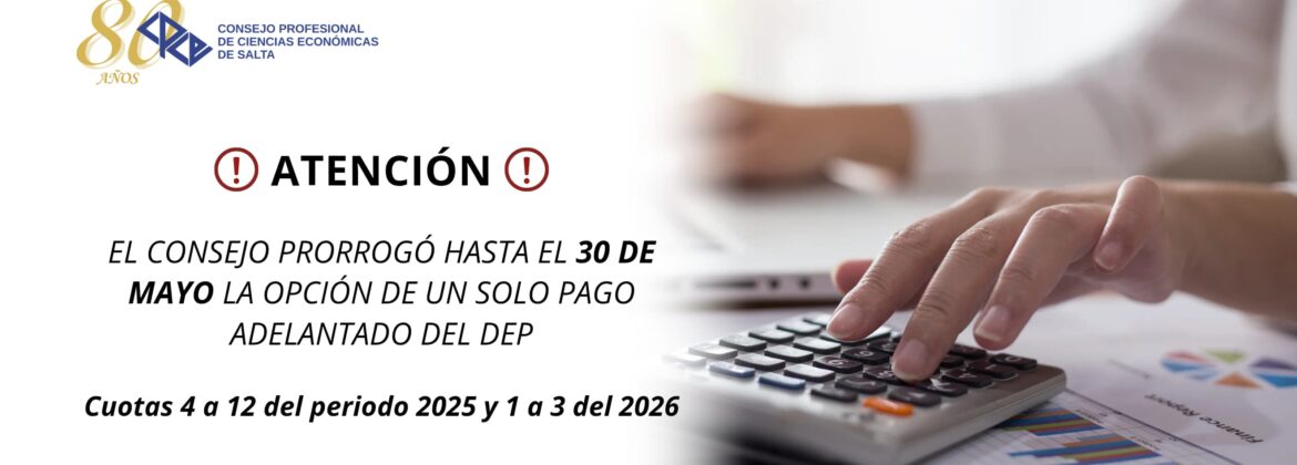 EL CONSEJO PRORROGÓ HASTA EL 30 DE MAYO LA OPCIÓN DE UN SOLO PAGO ADELANTADO DEL DEP – Cuotas 4 a 12 del periodo 2025 y 1 a 3 de 2026