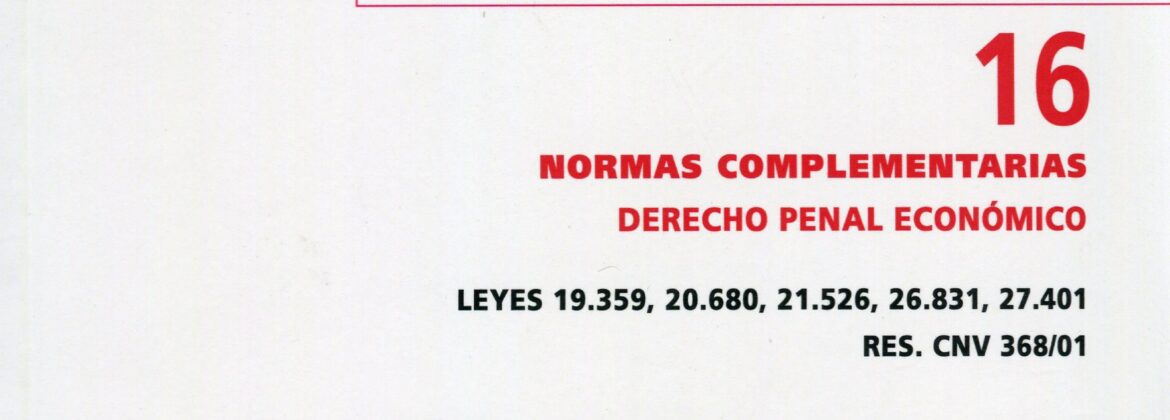TOMO 16. NORMAS COMPLEMENTARIAS Derecho penal económico. Leyes 19.359, 21.526, 26.831, 27.401 Res. CNV 368/01