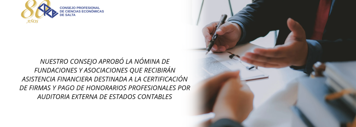 NUESTRO CONSEJO APROBÓ LA NÓMINA DE FUNDACIONES Y ASOCIACIONES QUE RECIBIRÁN ASISTENCIA FINANCIERA DESTINADA A LA CERTIFICACIÓN DE FIRMAS Y PAGO DE HONORARIOS PROFESIONALES POR AUDITORÍA EXTERNA DE ESTADOS CONTABLES