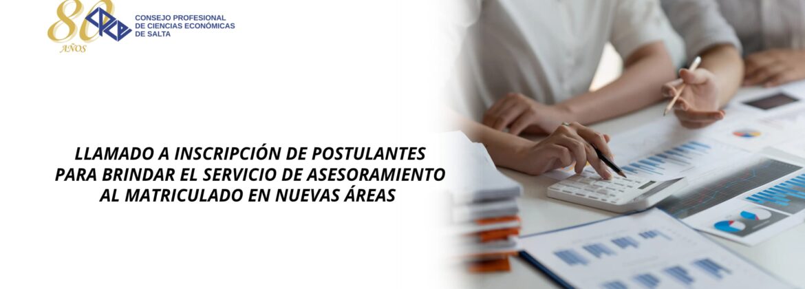 LLAMADO A INSCRIPCIÓN DE POSTULANTES PARA BRINDAR EL SERVICIO DE ASESORAMIENTO AL MATRICULADO EN NUEVAS ÁREAS
