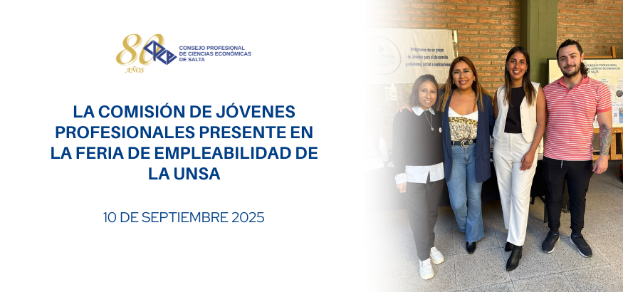 El día 10 de septiembre la Comisión de Jóvenes Profesionales participó de la Feria de Empleabilidad de la UNSa, en la cual dieron a conocer las actividades y proyectos que tiene la Comisión para fomentar el desarrollo profesional, institucional y social de los estudiantes universitarios y graduados de las ciencias económicas.
