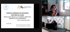 El miércoles 24 de septiembre se llevó a cabo la capacitación presencial “Estados Contables de Entidades con Fines de Lucro: Resolución Técnica N° 54 - Norma Unificada Argentina de Contabilidad”, bajo la disertación del Cr. Carlos Darío Torres y Cr. Hugo Marcelo Nazar.