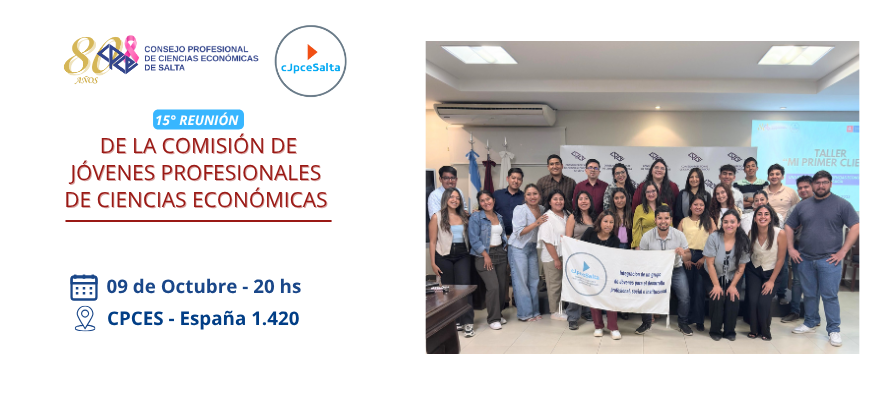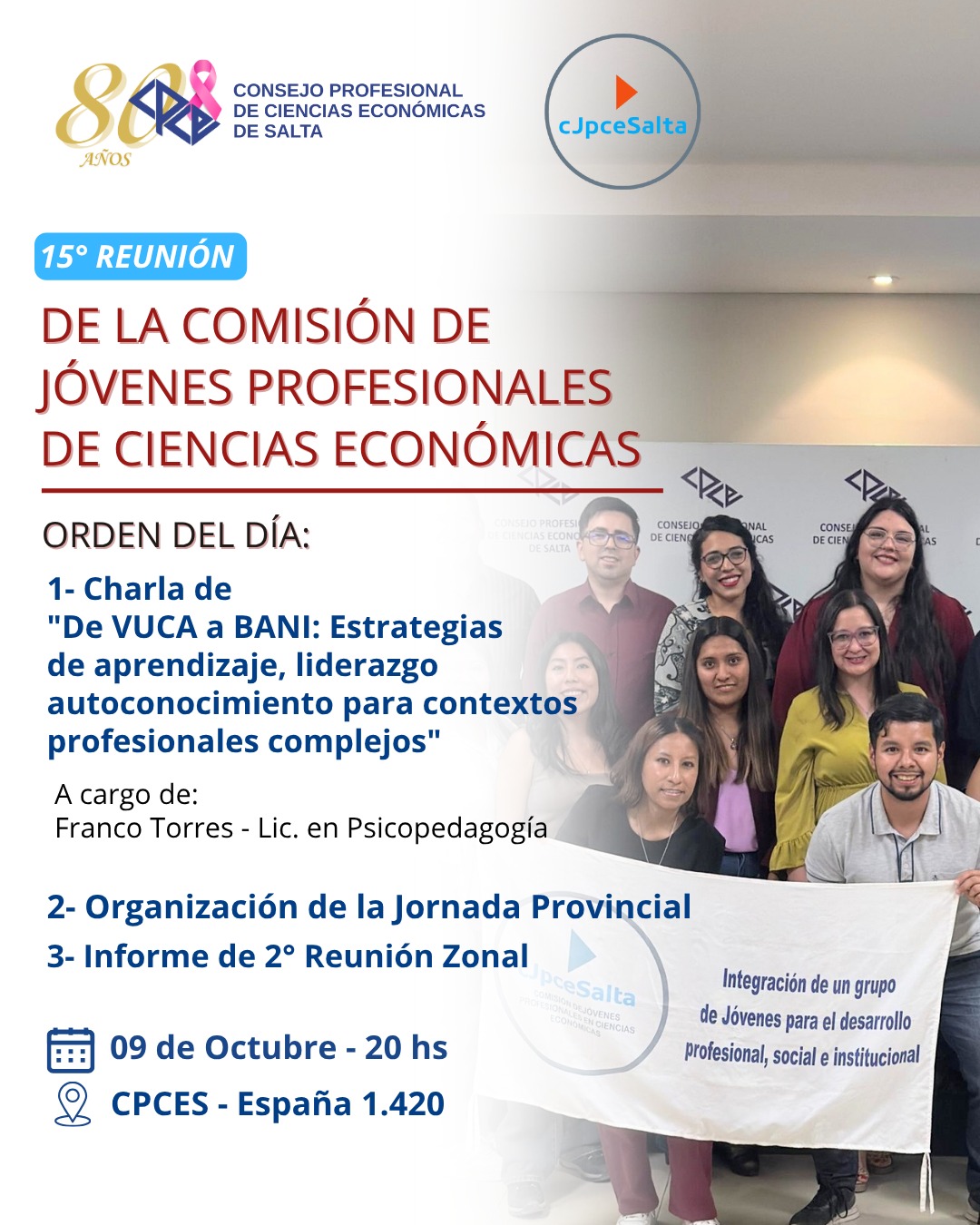 📣 Te invitamos a participar de la 15° Reunión Ordinaria organizada por la Comisión de Jóvenes Profesionales de Ciencias Económicas de Salta 🙌