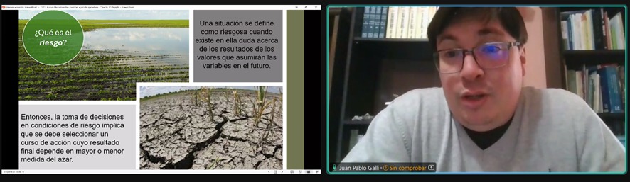 El día de la fecha dio inicio la capacitación online “Herramientas para el profesional en la gestión agrícola y ganadera 2da parte. Toma de decisiones en contextos de incertidumbre”, bajo la disertación del Cr. Juan Pablo Galli. La actividad se desarrollará en dos jornadas continuando el lunes 13 de octubre por la tarde.