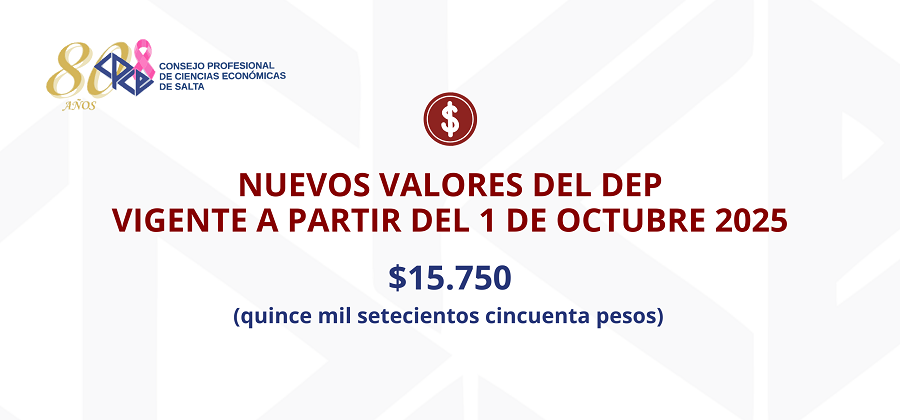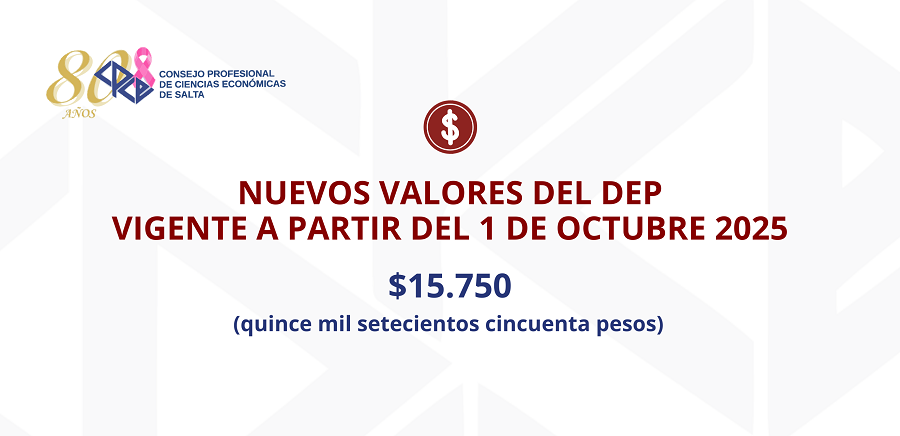 El Consejo Profesional de Ciencias Económicas de Salta informa que, mediante la Resolución de Presidencia Nº 90/2025 (ad-referéndum del Consejo Directivo), se fijó el nuevo valor de la cuota mensual por Derecho de Ejercicio Profesional, con vigencia a partir del 1 de octubre de 2025, quedando establecido en $ 15.750.