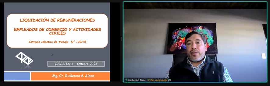 El viernes 31 de octubre, se llevó a cabo de manera online la capacitación “Liquidación de remuneraciones para empleados de comercio CCT 130/75”, bajo la disertación del Cr. Guillermo Enrique ALANIS.