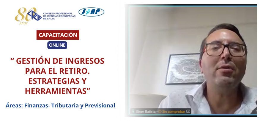 El día de la fecha se llevó a cabo la capacitación online “Gestion de ingresos para el retiro. Estrategias y herramientas” bajo la disertación del Mg. Einer Batista.