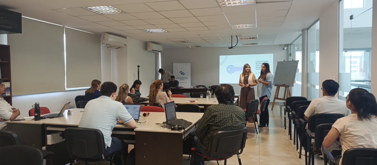 El día de la fecha se llevó a cabo de manera presencial el taller “Claves para estructurar proyectos de inversión exitosos”, bajo la disertación de la Cra. Celeste Lizárraga y de la Lic. Cecilia Beltramino.