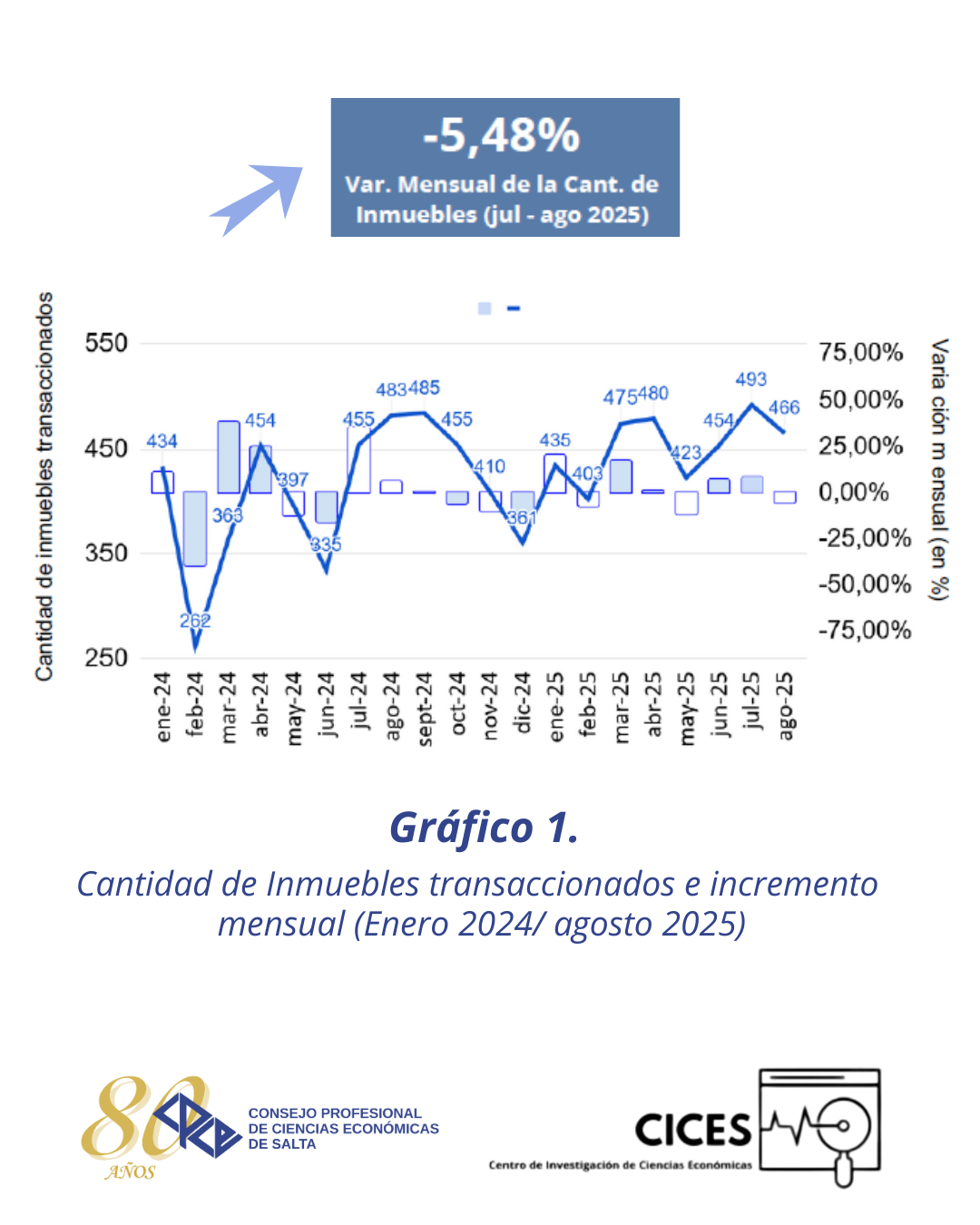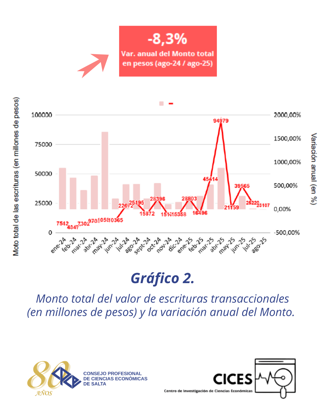 Ya podés acceder al nuevo informe de indicadores de escritura en Salta, de los meses julio y agosto de 2025, elaborado por el CICES (Centro de Investigaciones de Ciencias Económicas) de nuestro Consejo.