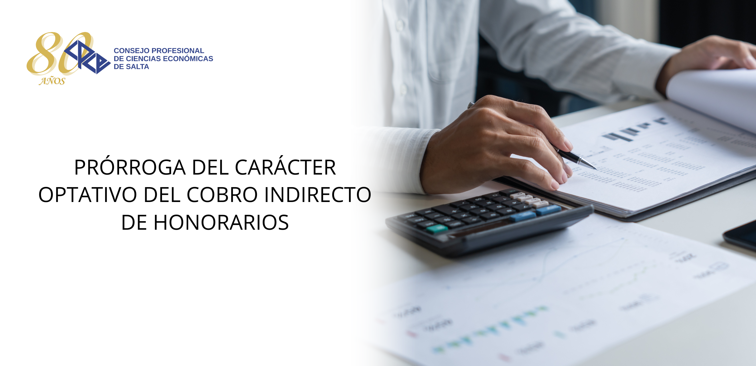 El Consejo Profesional de Ciencias Económicas de Salta, prorrogó mediante la Resolución de Presidencia Nº 2/2026, el carácter optativo del cobro indirecto de honorarios profesionales hasta el 31 de diciembre de 2026.