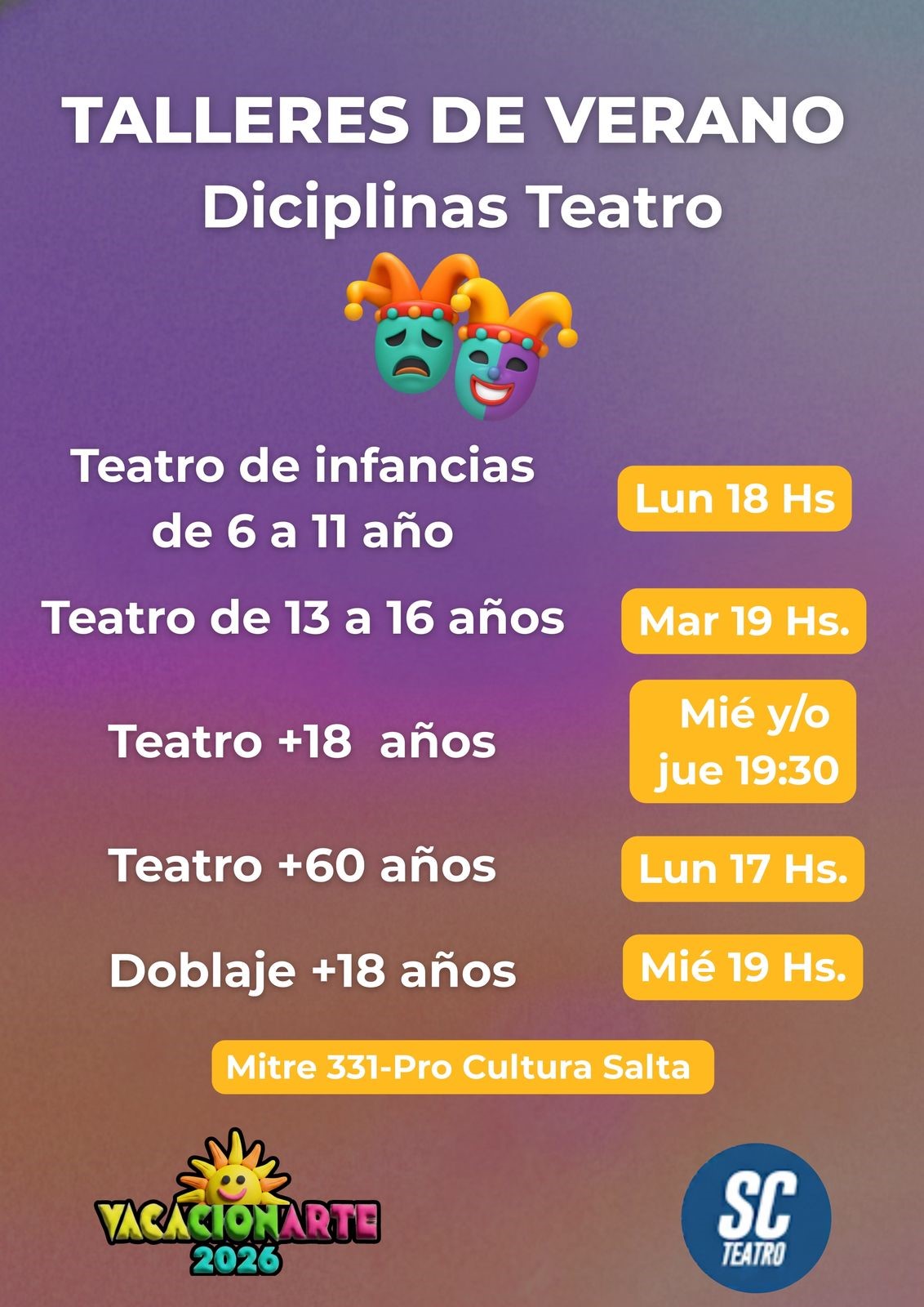 TALLERES DE VERANO DE PRO CULTURA SALTA 2026