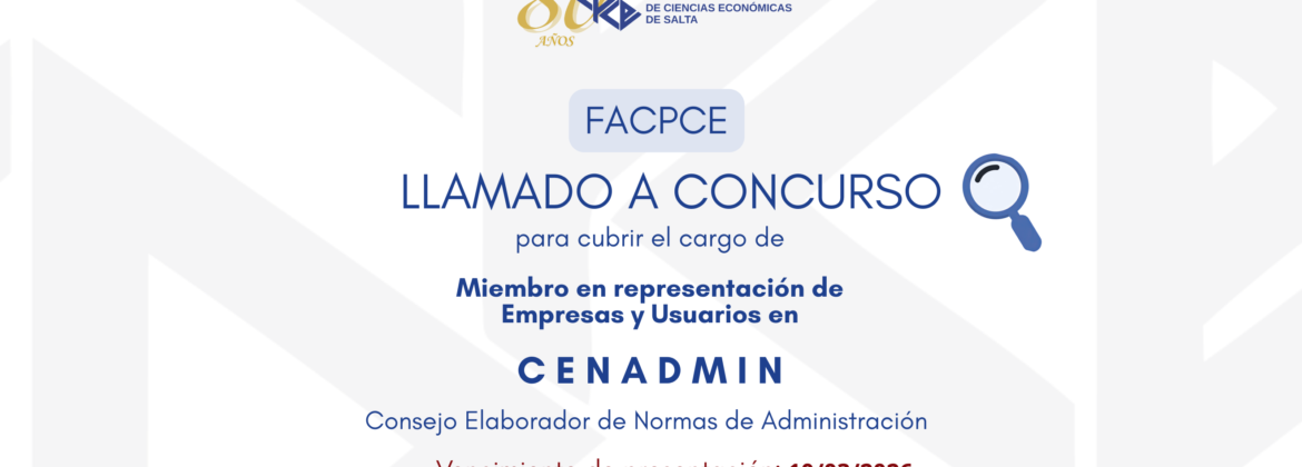 Se encuentra abierto el llamado a concurso para cubrir el siguiente cargo del Consejo Elaborador de Normas de Administración -CENADMIN