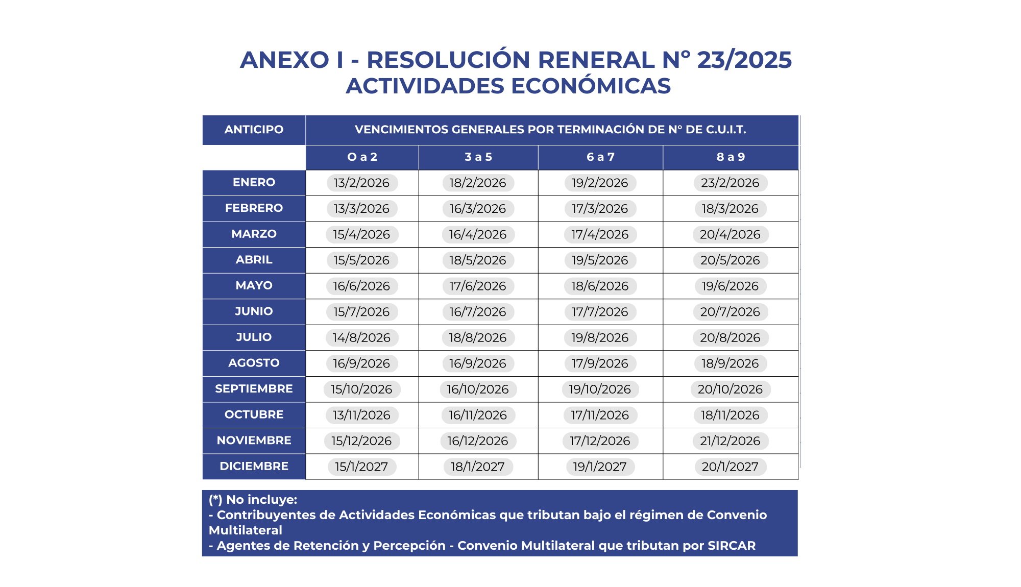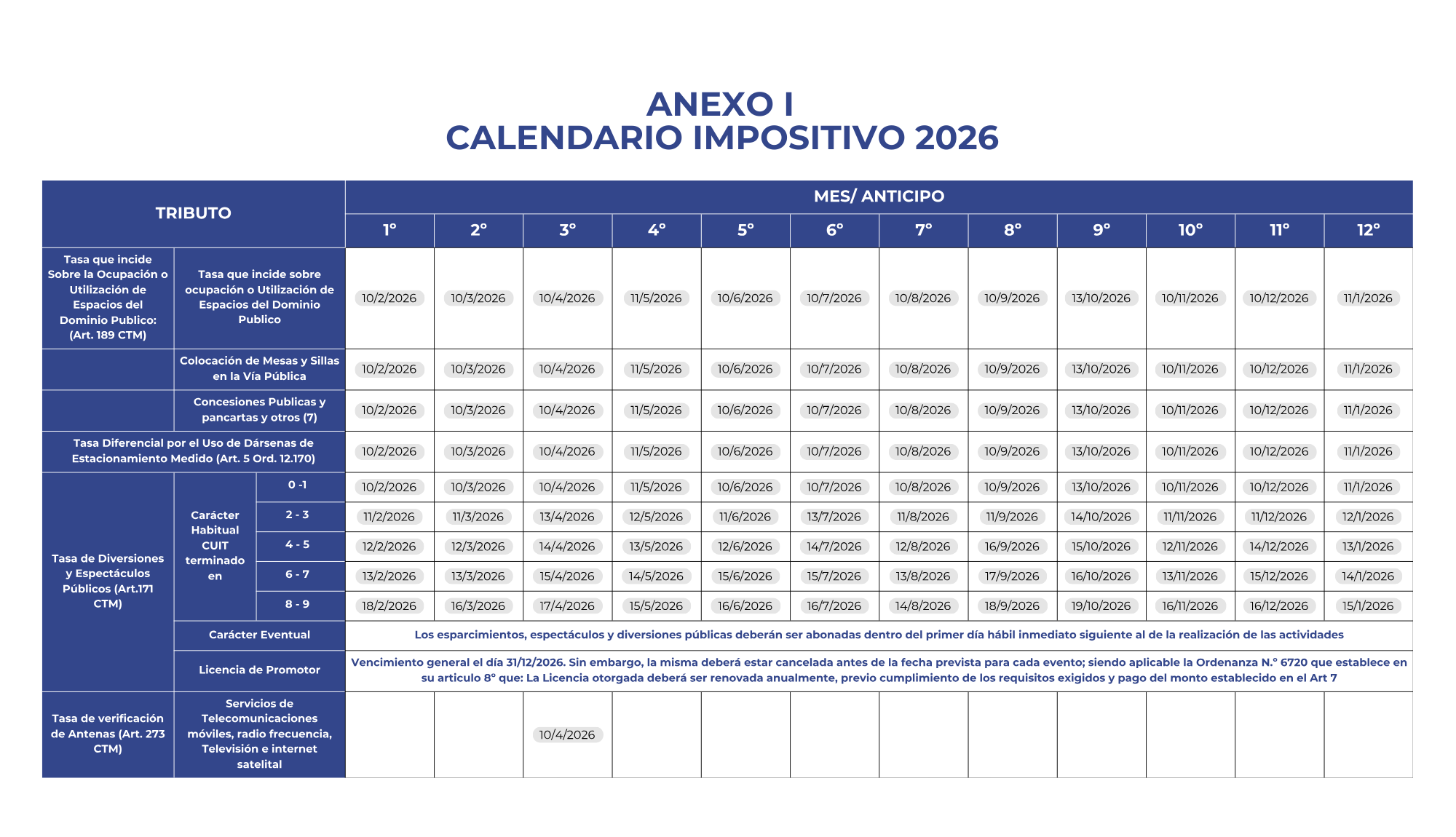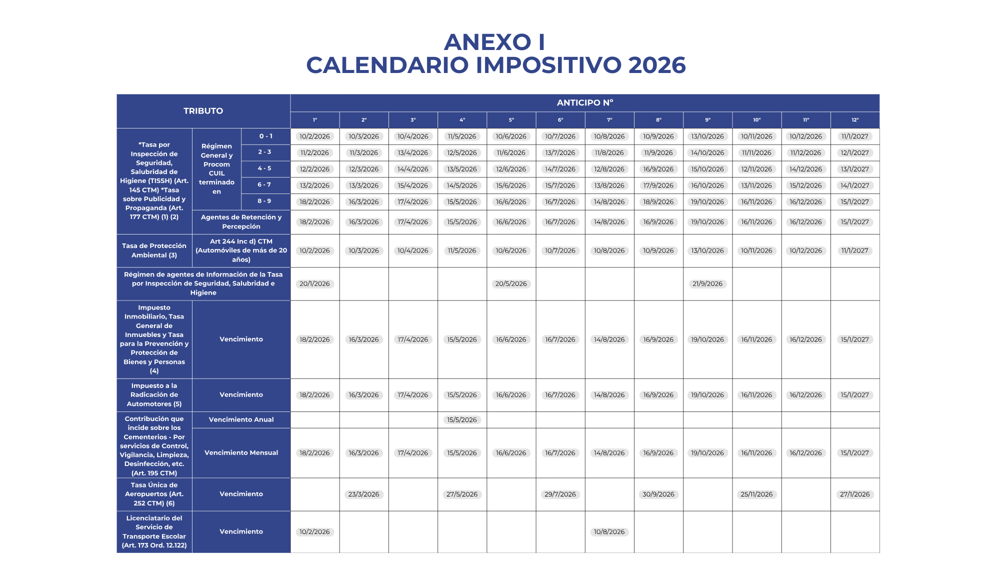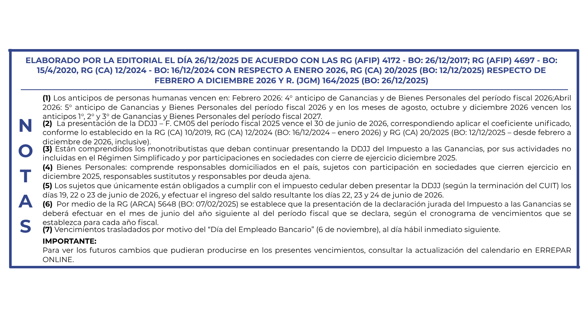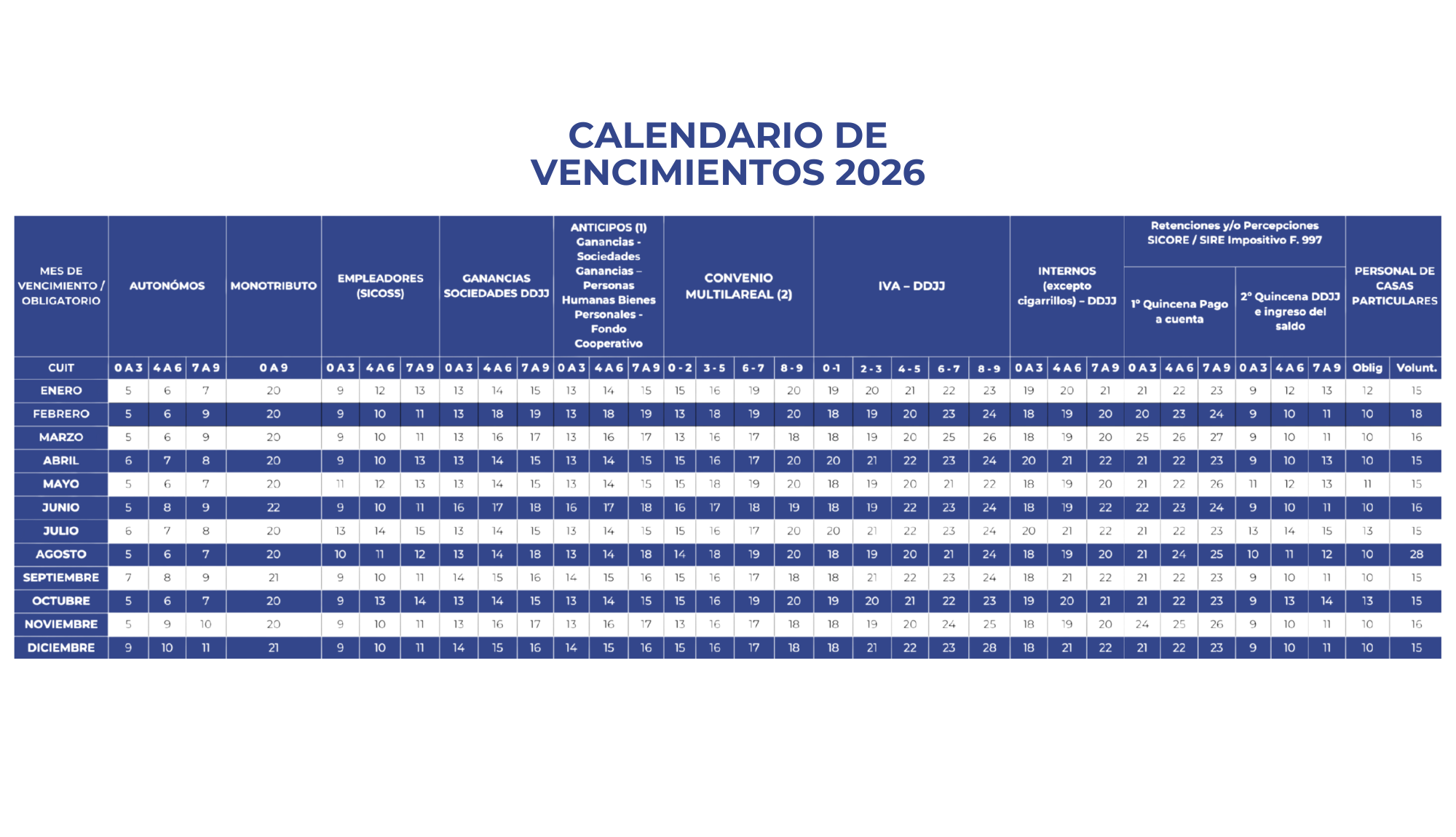 CALENDARIOS DE VENCIMIENTOS: AÑO 2026