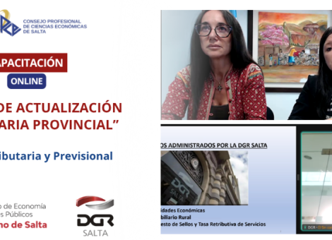 En el día de la fecha, se llevó a cabo de manera online el segundo encuentro del Ciclo de Actualización Tributaria Provincial. La jornada estuvo encabezada por la Cra. María Soledad Claros, Secretaria de Ingresos Públicos; la Cra. María Mercedes Uldry Fuentes, Directora General de Rentas de Salta; y el Cr. Alfonso Jorge Antonio Vega, Supervisor del Centro de Atención al Contribuyente de la DGR.