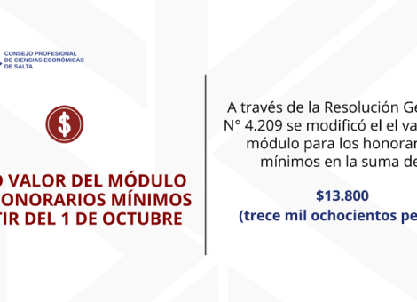 EL CPCES ACTUALIZÓ EL MONTO DE HONORARIOS MÍNIMOS A PARTIR DEL 1 DE OCTUBRE A través de la Resolución General N° 4.209 se modificó el el valor del módulo para los honorarios mínimos en la suma de Pesos trece mil ochocientos ($ 13.800). Dicha Resolución entrará en vigencia a partir del 1° de octubre de [...]