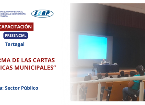 En el marco de las actividades realizadas en conmemoración del 101 aniversario de la fundación de la Ciudad de Tartagal el viernes 26 y sábado 27 de septiembre, se llevó a cabo de manera presencial en el Centro Cultural de dicha ciudad, la capacitación “Reforma de las Cartas Orgánicas Municipales”, bajo la disertación del Cr. Sergio Gastón Moreno.
