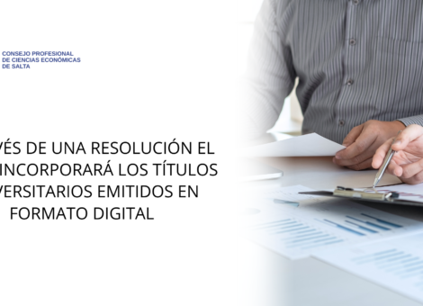 El Consejo Directivo del Consejo Profesional de Ciencias Económicas de Salta resolvió a través de la Resolución N° 4205, modificar el artículo 5° del Reglamento de Matrículas, aprobado por Resolución General N.º 3134 el siguiente párrafo: “En caso de que el título universitario haya sido emitido en formato digital, se aceptará su presentación en soporte [...]