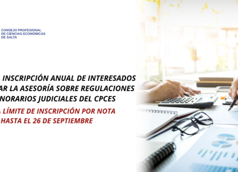 A través de la Resolución de Presidencia N° 83, se efectuó llamado a inscripción anual de interesados en efectuar la asesoría sobre regulaciones de honorarios judiciales del Consejo Profesional de Ciencias Económicas de Salta, debiendo observarse lo establecido en el Anexo I de la Resolución General N° 3.485, para el período 01/10/2025 al 30/09/2026. Los [...]