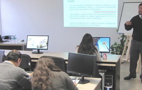 El día lunes 5 de junio, dio inicio en el Aula Informática del Consejo Profesional de Ciencias Económicas de Salta, el curso “Los Sistemas de AFIP/ANSES y su empleo en las diferentes etapas de una relación laboral: Simplificación Registral, SICOSS, Certificaciones Web y Otros” continuando los días 9 y 12 del corriente mes, a cargo del Cr. Guillermo Enrique ALANIS.