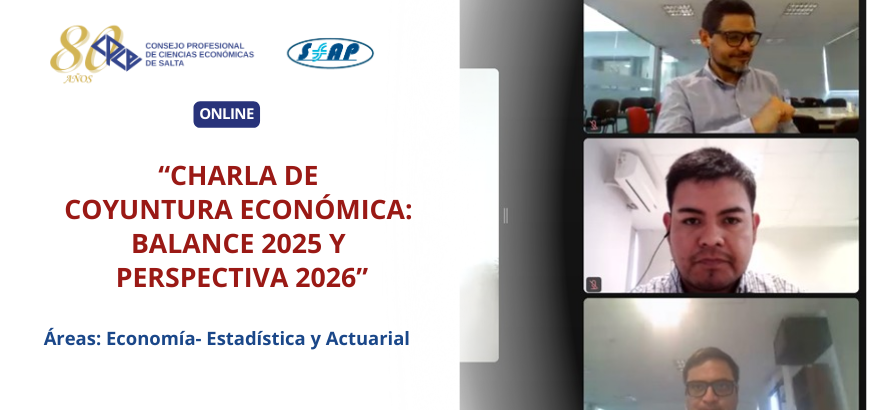 El lunes 22 de diciembre se llevó a cabo de manera online la “Charla de coyuntura económica: Balance 2025 y perspectiva 2026”, bajo la disertación del Lic. Gastón Carrazán Mena, Lic. José María Pabón Loza y el Lic. Gustavo González Guaymas.