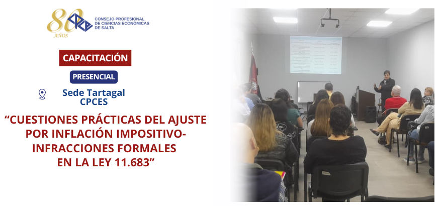 El jueves 9 de abril, en la sede Tartagal del CPCES, dio inicio la capacitación “Cuestiones prácticas del ajuste por inflación impositivo – Infracciones formales en la Ley 11.683”, a cargo de la Mg. Hermosinda Egüez.