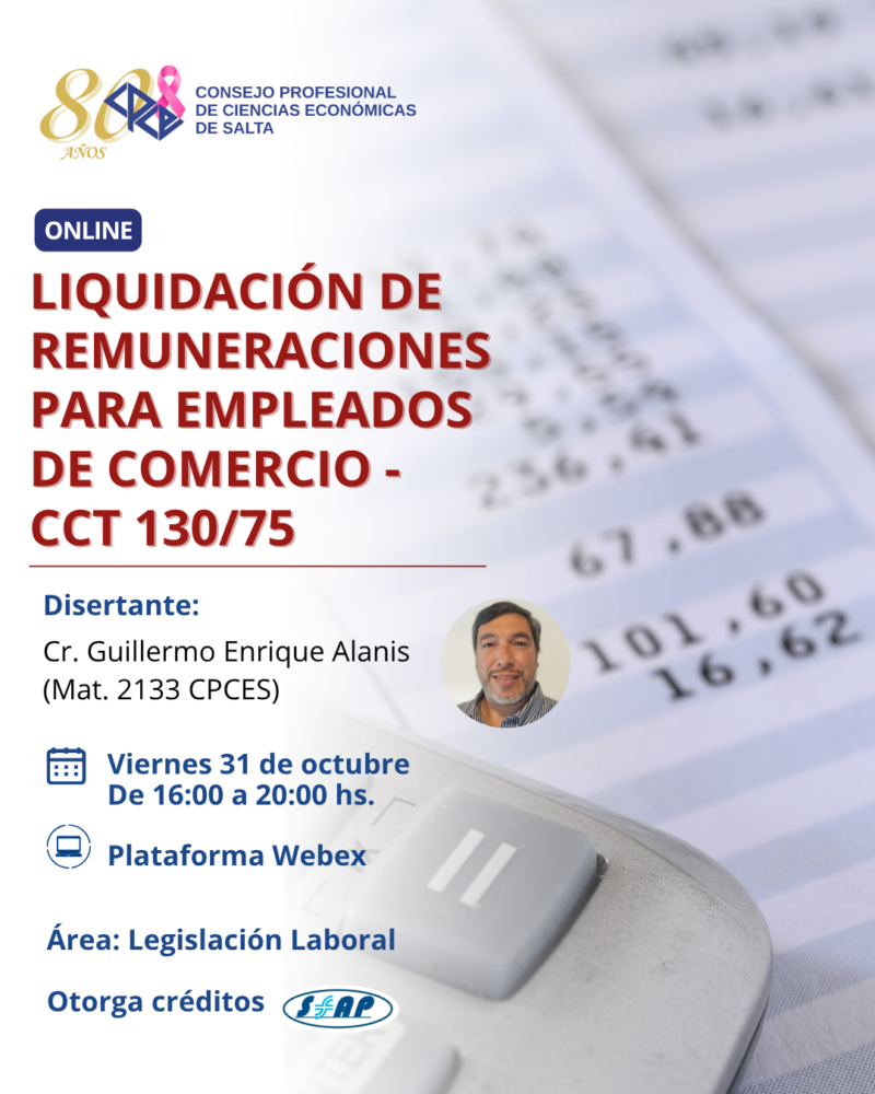 Capacitación Online: «Liquidación de remuneraciones para empleados de comercio – CCT 130/75»