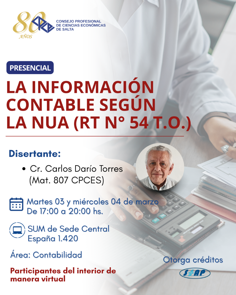 Capacitación PRESENCIAL: «La Información Contable según la N.U.A. (R.T. Nº 54 T.O.)»
