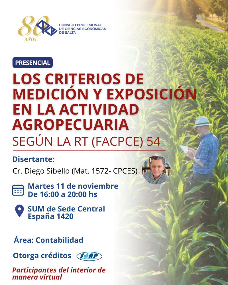 Capacitación Presencial: «Los criterios de medición y exposición en la Actividad Agropecuaria según la RT (FACPCE) 54»
