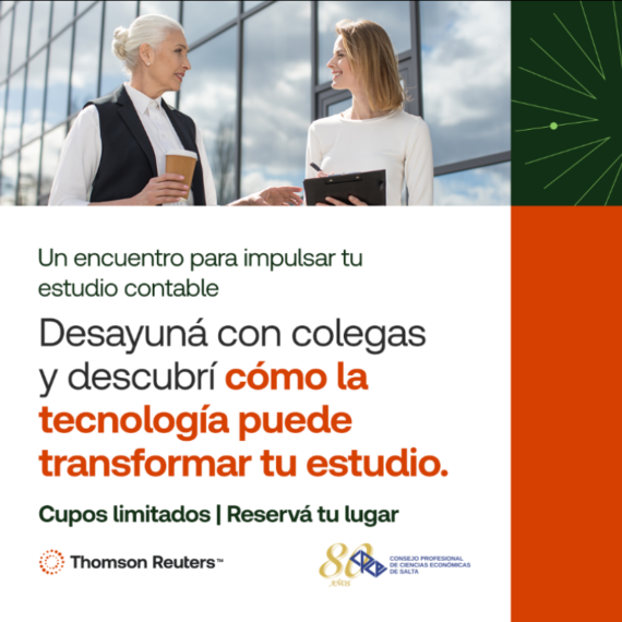 Desde Thomson Reuters ONVIO y en colaboración con el Consejo Profesional de Ciencias Económicas de Salta, queremos invitarte a un exclusivo Desayuno de Trabajo.