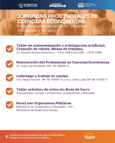 JORNADAS PROVINCIALES DE CIENCIAS ECONÓMICAS. PROFESIONALES DEL 3ER SECTOR Y JÓVENES IMPULSANDO A CÓRDOBA – 28/6 – CPCE CÓRDOBA