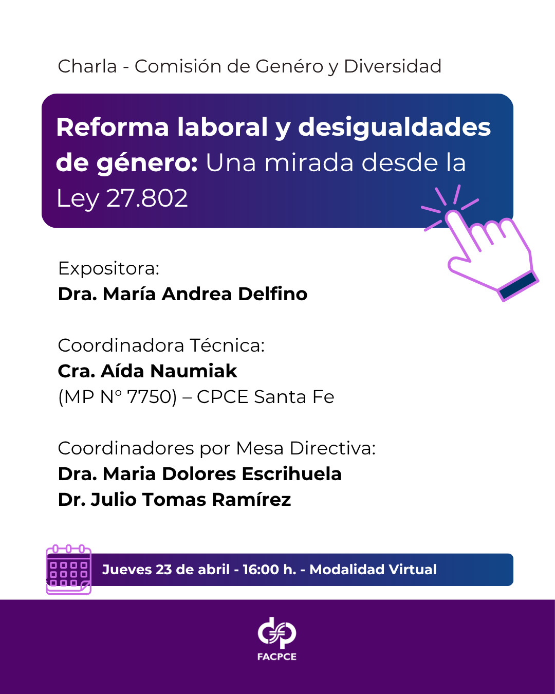 Día: Jueves 23 de abril, de 16 a 17 hs.